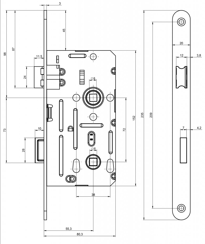 • mechanický zadlabací zámek ovládání WC kličkou 6 mm