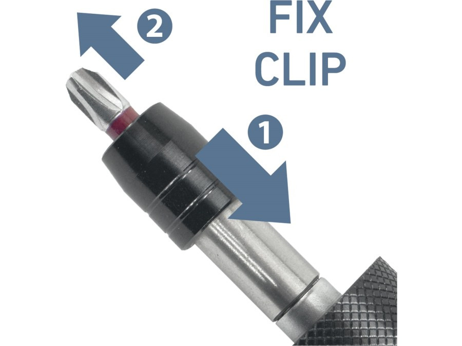 líč momentový na hroty 1/4". Celokovové provedení s anodizovanou hliníkovou rukojetí. Mechanismus funkce Fix-Clip pracuje tak, že hrot je po lehkém zatlačení do držáku pevně zafixován a pro jeho vyjmutí je třeba vnější prstenec nejprve zatlačit směrem k rukojeti a poté hrot vyjmout. Stupnice nastavení kroutícího momentu (Δ) po 0,05 Nm.